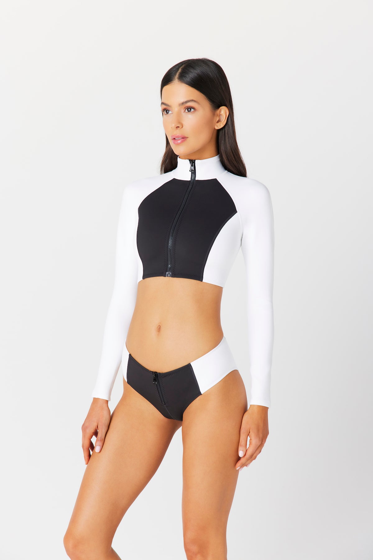 The Stylishfindsl Short is perfect for a day out at the beach. You’ll feel like a free spirit in this renaissance bottom. Simple but never boring. Cheeky bottom coverage to emphasize your curves. Shown with the Missy Surf Jacket.